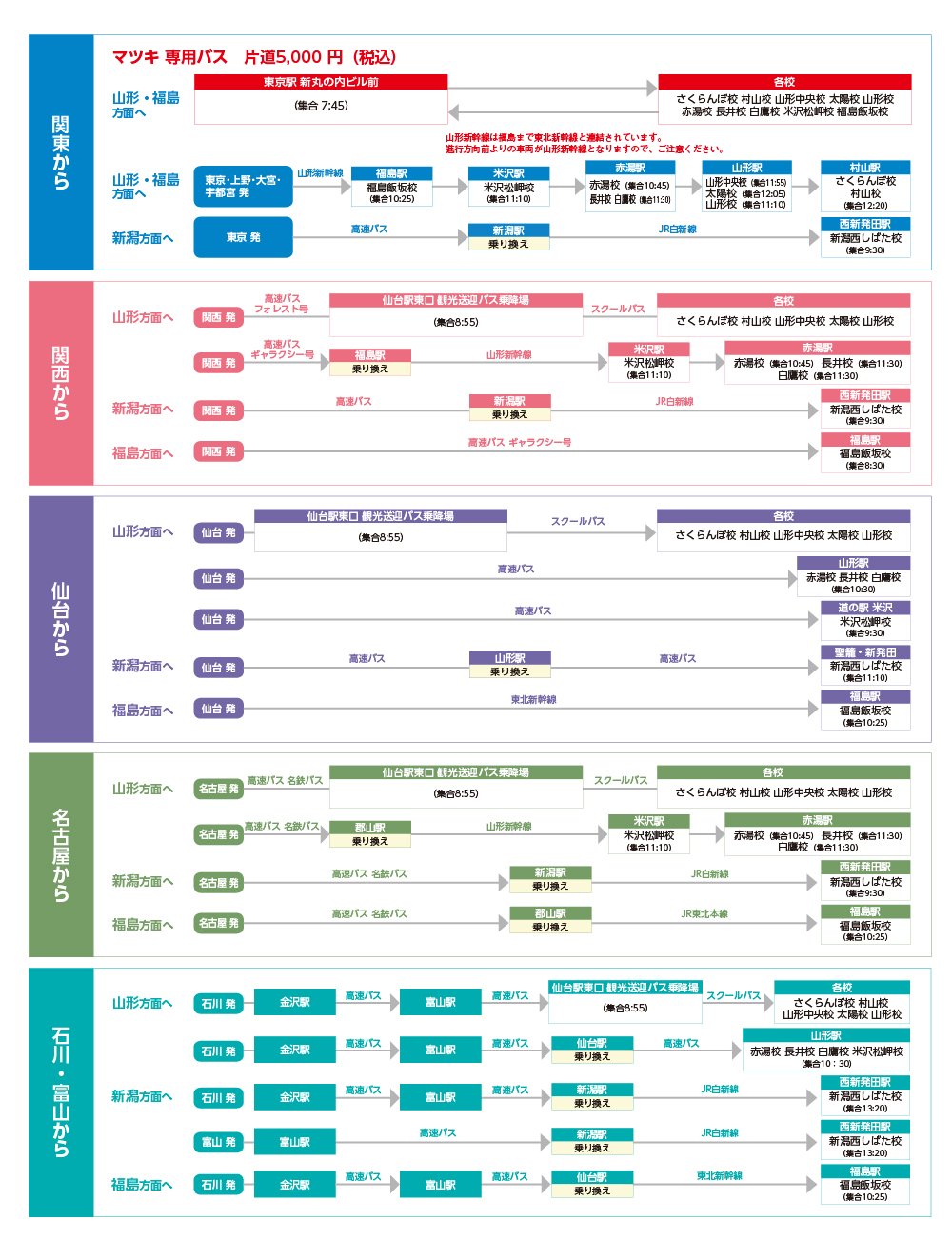 - マツキドライビングスクールが運行する東京駅から山形各校へ直通(一部学校は乗り継ぎあり)のお得な高速バスもあります。